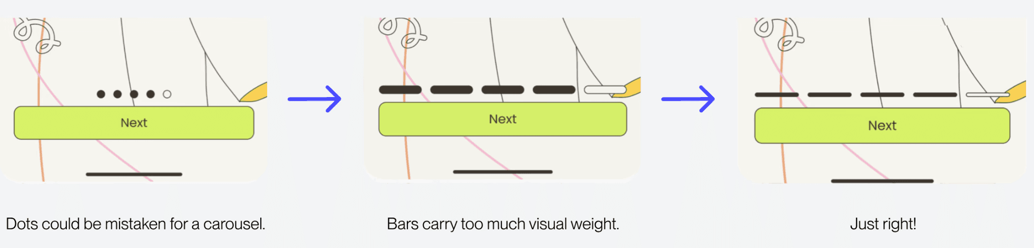 Onboarding is the user's first impression of the app and an essential element for user retention. Guaranteeing that the user is visible of the system status (ie. number of steps) is vital for a smooth and reassuring experience.